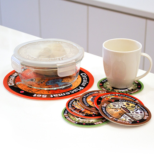 Item Description : Placemat set made of white FELT with your logo/designs sublimated on full surface of the 7 pieces which include 1 large piece for tea/coffee pot and 6 small pieces for cups/mugs  Click to Login